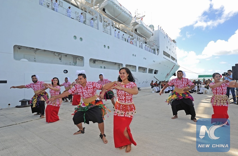 SUVA, Aug. 16 (Xinhua) -- A group of 26 medical staff and crew from visiting Chinese naval hospital ship Ark Peace on Wednesday enjoyed a special get-together with students of Tonga High School located in Tongatapu, the main island of the South Pacific Island nation and the location of its capital city of Nukualofa.