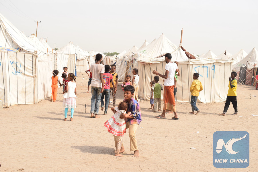 Standing with his four children next to their tent at an internally displaced camp in the outskirts of Aden province, Obeid told Xinhua that there is no place for happiness to enjoy festival celebrations this year.