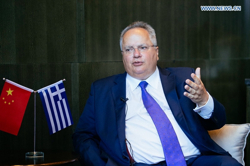 Greek Foreign Minister Nikos Kotzias receives an exclusive interview with Xinhuanet in Beijing, Aug. 27, 2018. (Xinhuanet/Guo Xiaotian)