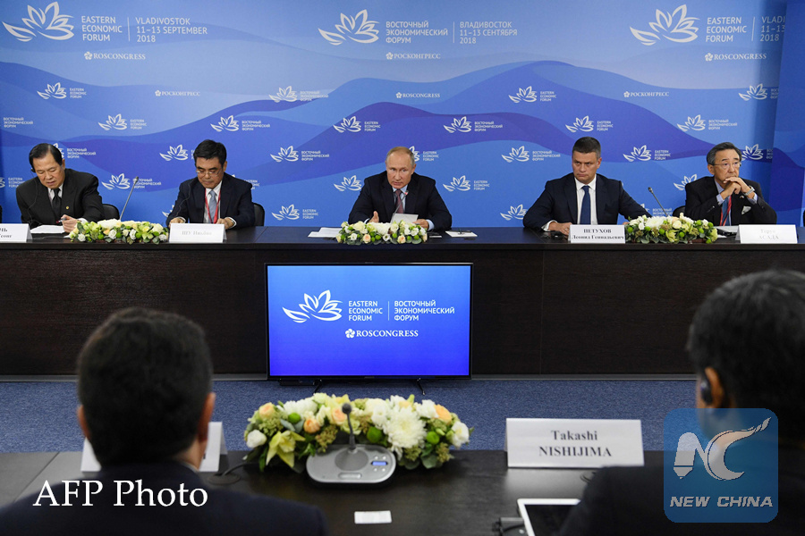 VLADIVOSTOK, Russia, Sept. 11 (Xinhua) -- World leaders and business tycoons gathered in Russia's Far Eastern port city of Vladivostok to discuss cooperation at the fourth Eastern Economic Forum (EEF) that opened Tuesday.