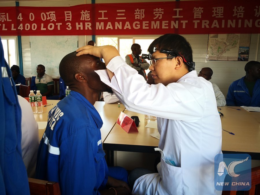 File photo shows doctors of the 20th Chinese medical mission for Zambia providing free treatment for local employees of Chinese companies in Zambia. (Xinhua)