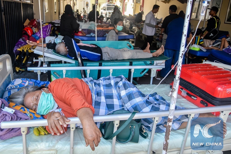 People injured in the earthquake and tsunami receive medical treatment at a hospital in Palu, Central Sulawesi, Indonesia, on Oct. 1, 2018. (Xinhua/Iqbal Lubis)
