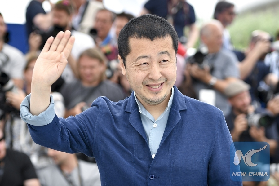 Director Jia Zhangke of the Chinese film in competition, "Ash is Purest White", poses during a photocall of the 71st Cannes International Film Festival in Cannes, France on May 12, 2018.(Xinhua/Chen Yichen)