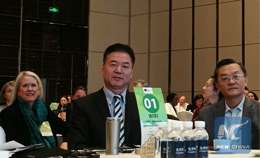 Jiang Qibo, a judge sitting on China's Supreme People's Court, attends the second edition of the WADA Global Education Conference on Oct. 25, 2018. (Xinhua/Ma Xiangfei)