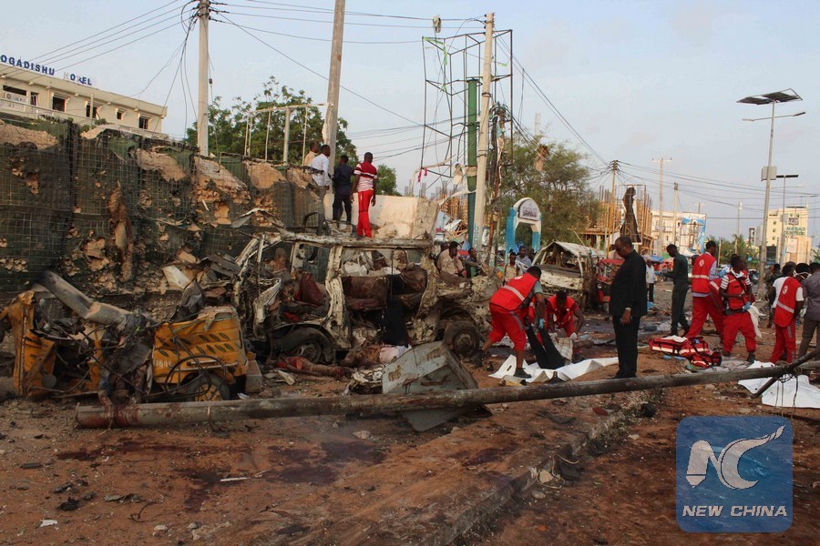 MOGADISHU, Nov. 10 (Xinhua) -- The number of people who perished in the triple terrorist attacks in Mogadishu on Friday has risen to 50 while 58 others are nursing injuries in various city hospitals, police and medical sources said on Saturday.