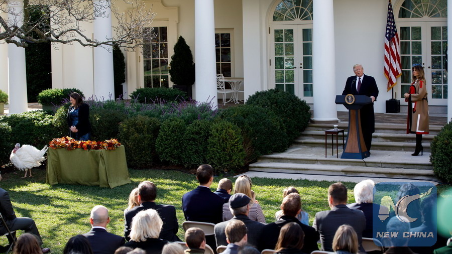 WASHINGTON, Nov. 20 (Xinhua) -- U.S. President Donald Trump on Tuesday pardoned two turkeys, namely "Peas" and "Carrots", in an annual White House tradition for the coming Thanksgiving holidays.