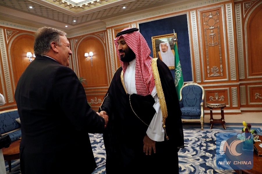 File Photo: U.S. Secretary of State Mike Pompeo meets with Saudi Crown Prince Mohammed bin Salman during his visit in Riyadh, Saudi Arabia, Oct. 16, 2018. (Xinhua/REUTERS)