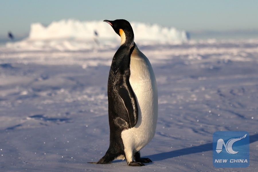 An emperor penguin is seen near China's research icebreaker Xuelong in Antarctica, Dec. 2, 2018. (Xinhua/Liu Shiping)