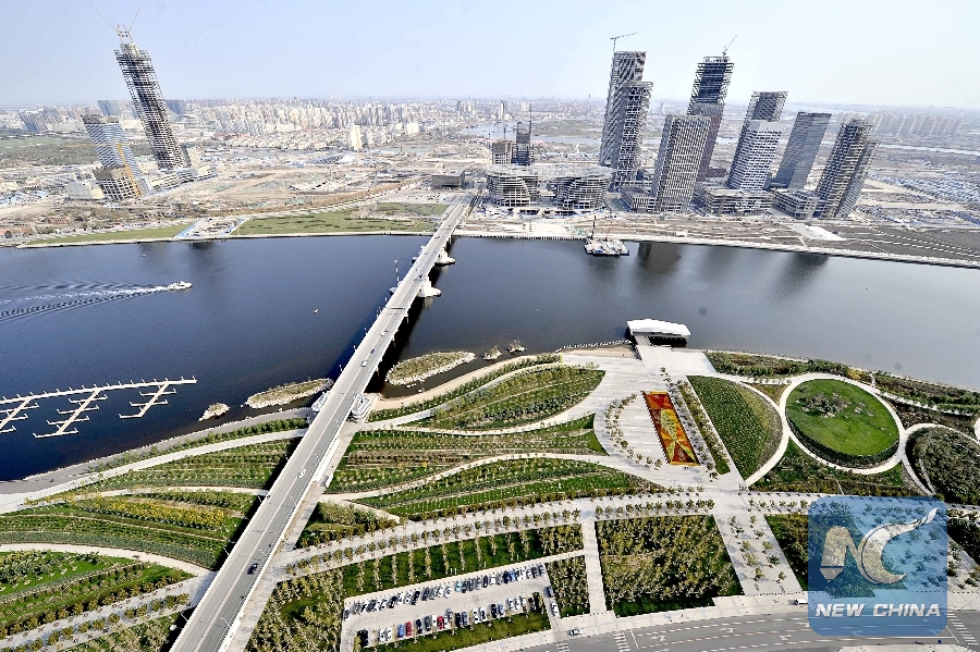 Photo taken on Nov. 7, 2014 shows the landscape of Yujiapu Finance District at Binhai New Area of the China (Tianjin) Pilot Free Trade Zone (FTZ) in north China's Tianjin Municipality. (Xinhua/Yue Yuewei)