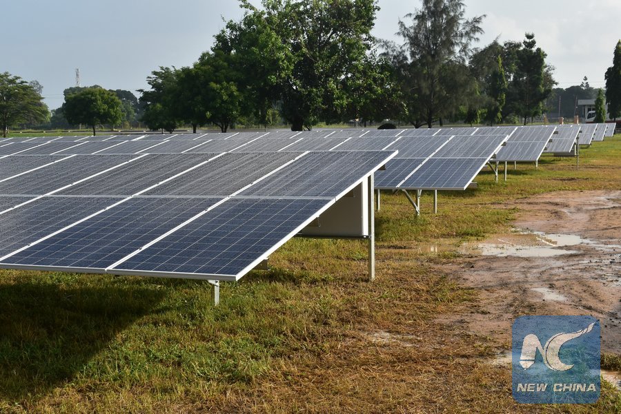 Photo taken on Dec. 12, 2018 shows solar panels during its launch in Mombasa, Kenya. Kenya has become the first country in East Africa to install a solar system at a major airport to reduce carbon emissions by large planes during their take-off. (Xinhua/Joy Nabukewa)