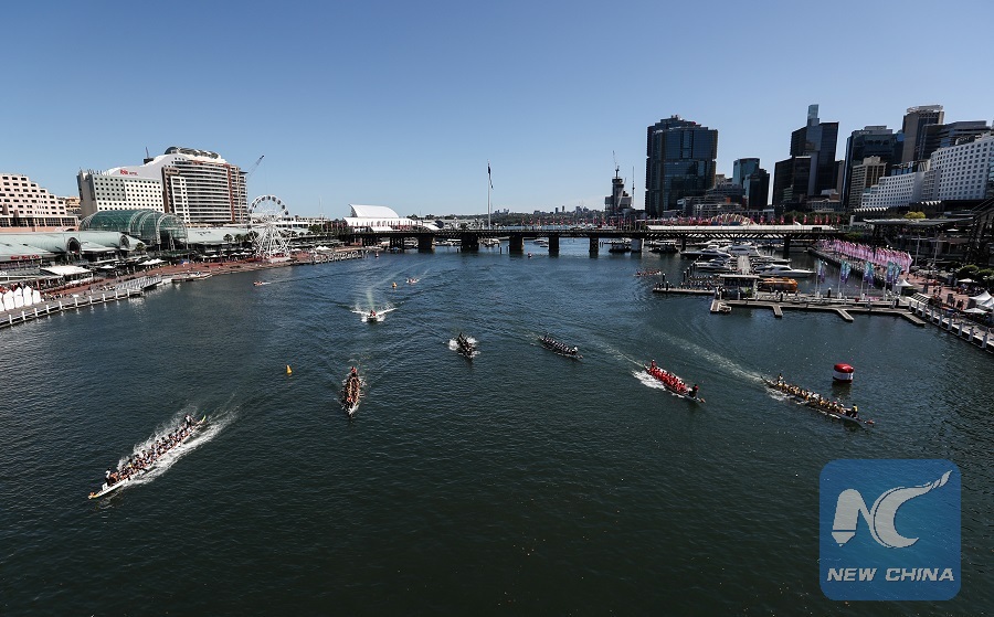SYDNEY, Feb. 10 (Xinhua) -- The largest dragon boat event in the southern hemisphere made a splash on Sydney Harbor over the weekend, highlighting the city's Lunar New Year festivities.