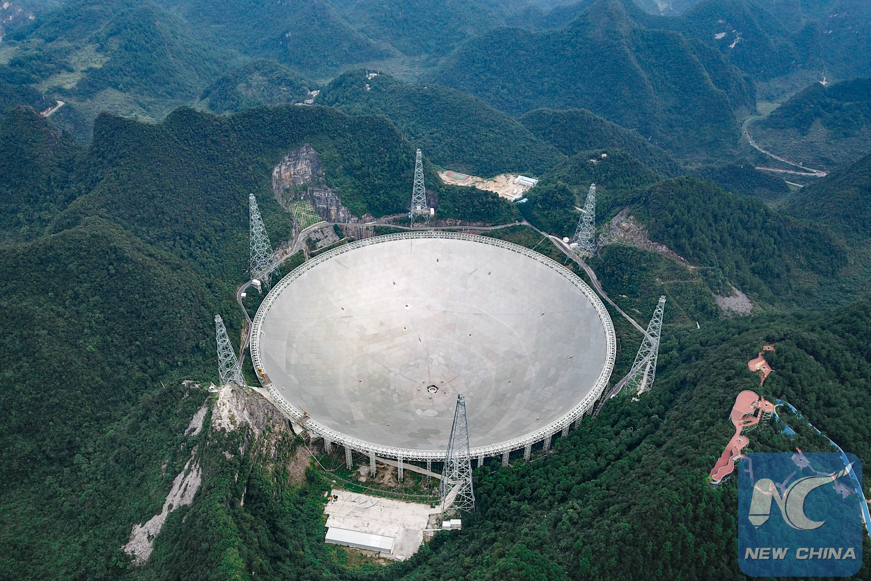 Photo taken on Sept. 10, 2018 shows China's Five-hundred-meter Aperture Spherical Radio Telescope (FAST) in southwest China's Guizhou Province. (Xinhua/Ou Dongqu)