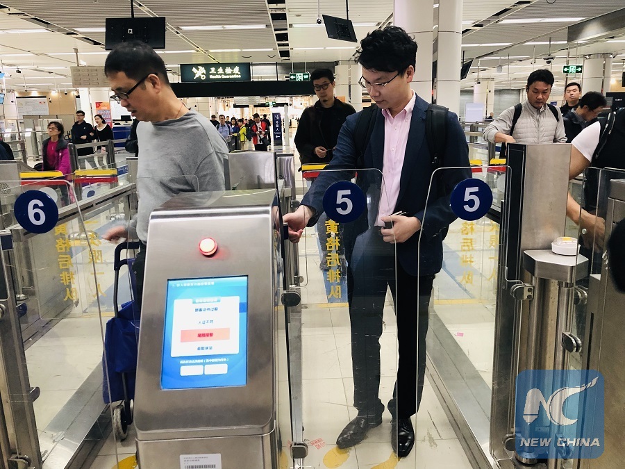 Abraham Lam passes through an automatic channel at Shenzhen Bay Port, Feb. 14, 2019. (Xinhua/Gao Jie)