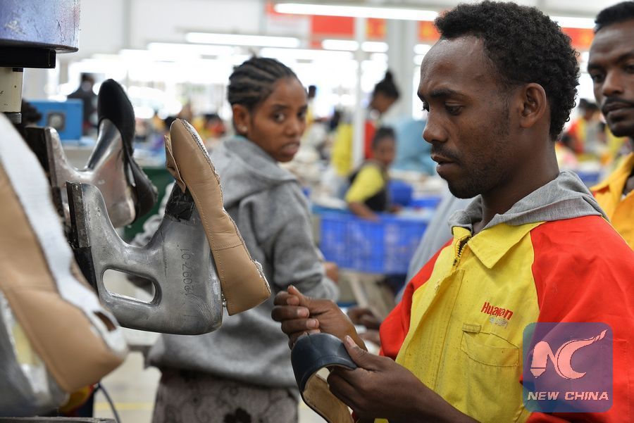 File photo shows a laborer works at Huajian factory, south of Addis Ababa, capital of Ethiopia, July 19, 2017. (Xinhua/Michael Tewelde)