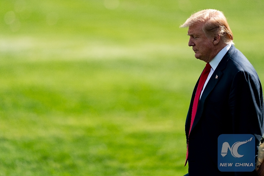 U.S. President Donald Trump and first lady Melania Trump (not in the picture) depart the White House in Washington D.C., the United States, on April 18, 2019. (Xinhua/Ting Shen)
