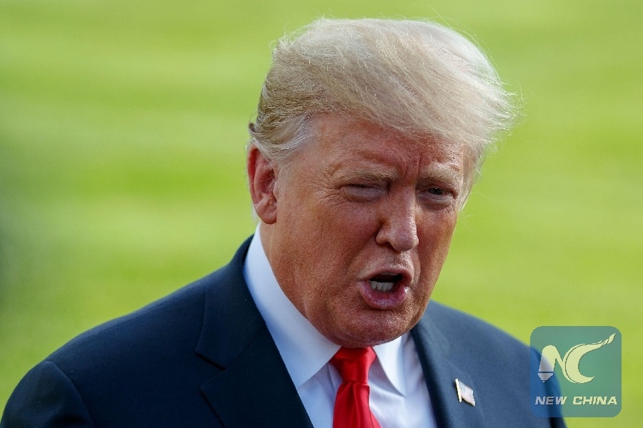 File Photo: U.S. President Donald Trump speaks to reporters before leaving the White House in Washington D.C., the United States, on Oct. 9, 2018. (Xinhua/Ting Shen)