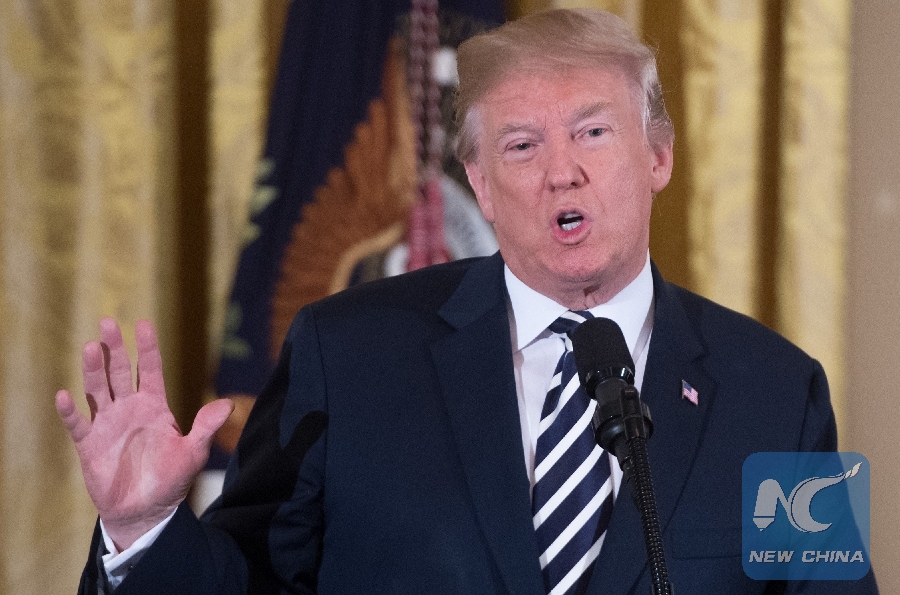 U.S. President Donald Trump speaks during an event in honor of Military Mothers and Spouses in the East Room of the White House in Washington, DC, May 9, 2018. (Xinhua/AFP PHOTO)