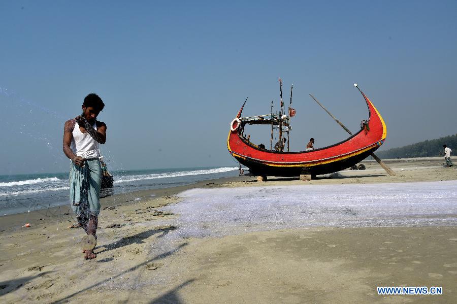 A fisherman prepares his fishing net near a boat in Cox's Bazar, Bangladesh, Jan. 9, 2019. China will hold the Conference on Dialogue of Asian Civilizations starting from May 15. Under the theme of "exchanges and mutual learning among Asian civilizations and a community with a shared future," the conference includes an opening ceremony and sub-forums. (Xinhua/Salim Reza)