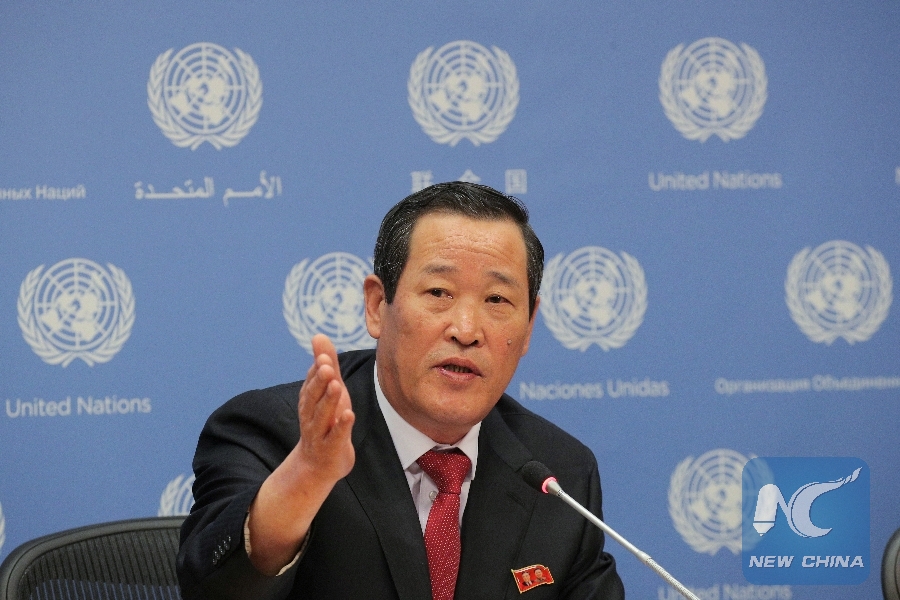 The permanent representative of the Democratic People's Republic of Korea (DPRK) to the United Nations, Kim Song, speaks during a news conference at U.N. headquarters in New York, U.S., May 21, 2019. (Xinhua/REUTERS)
