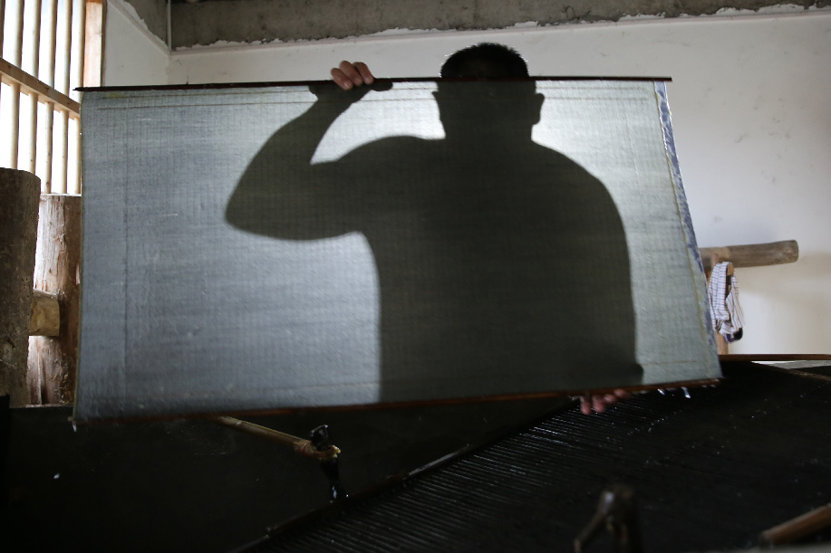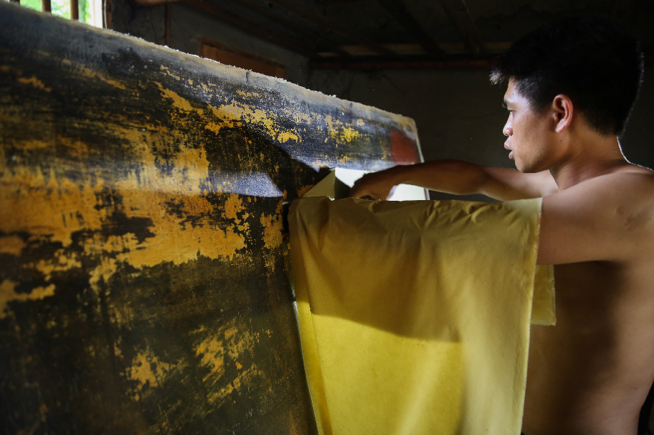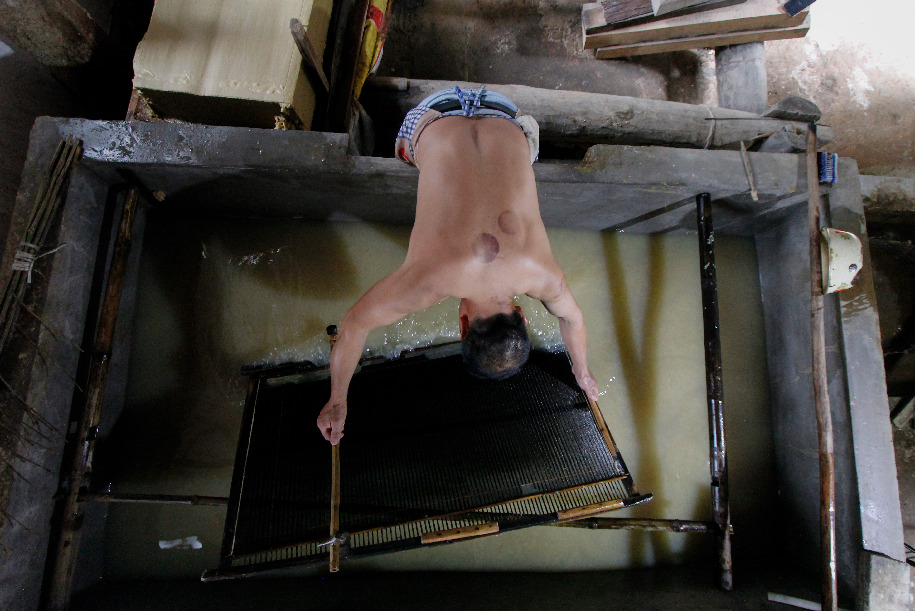 Since 2015, Li Qiugui, 35, has been committed to inheriting the ancient craft of handmade paper from his father Li Zhijun with the papermaking techniques such as bamboo cutting, soaking, crushing, squeezing and drying. Li Qiugui wishes that he and his father could promote their own workshop to a papermaking research institute known nationwide.