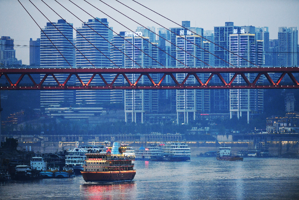 Photo taken on April 5, 2019 shows the Chaotianmen Dock in Chongqing, southwest China. Chongqing, a city located on hills, is known for its stereoscopic landscapes. (Xinhua)