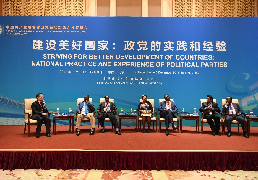 The panel discussion themed "Striving for Better Development of Countries: National Practice and Experience of Political Parties" is held during the Communist Party of China (CPC) in Dialogue with World Political Parties High-Level Meeting in Beijing, capital of China, Dec. 2, 2017. (Xinhua/Shen Hong)