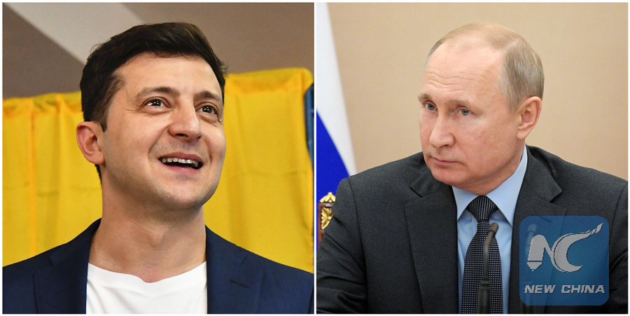 MOSCOW, July 11 (Xinhua) -- Russian President Vladimir Putin and Ukraine's new president Volodymyr Zelensky discussed the issue of the Ukrainian conflict in their first telephone conversation, the Kremlin said Thursday.