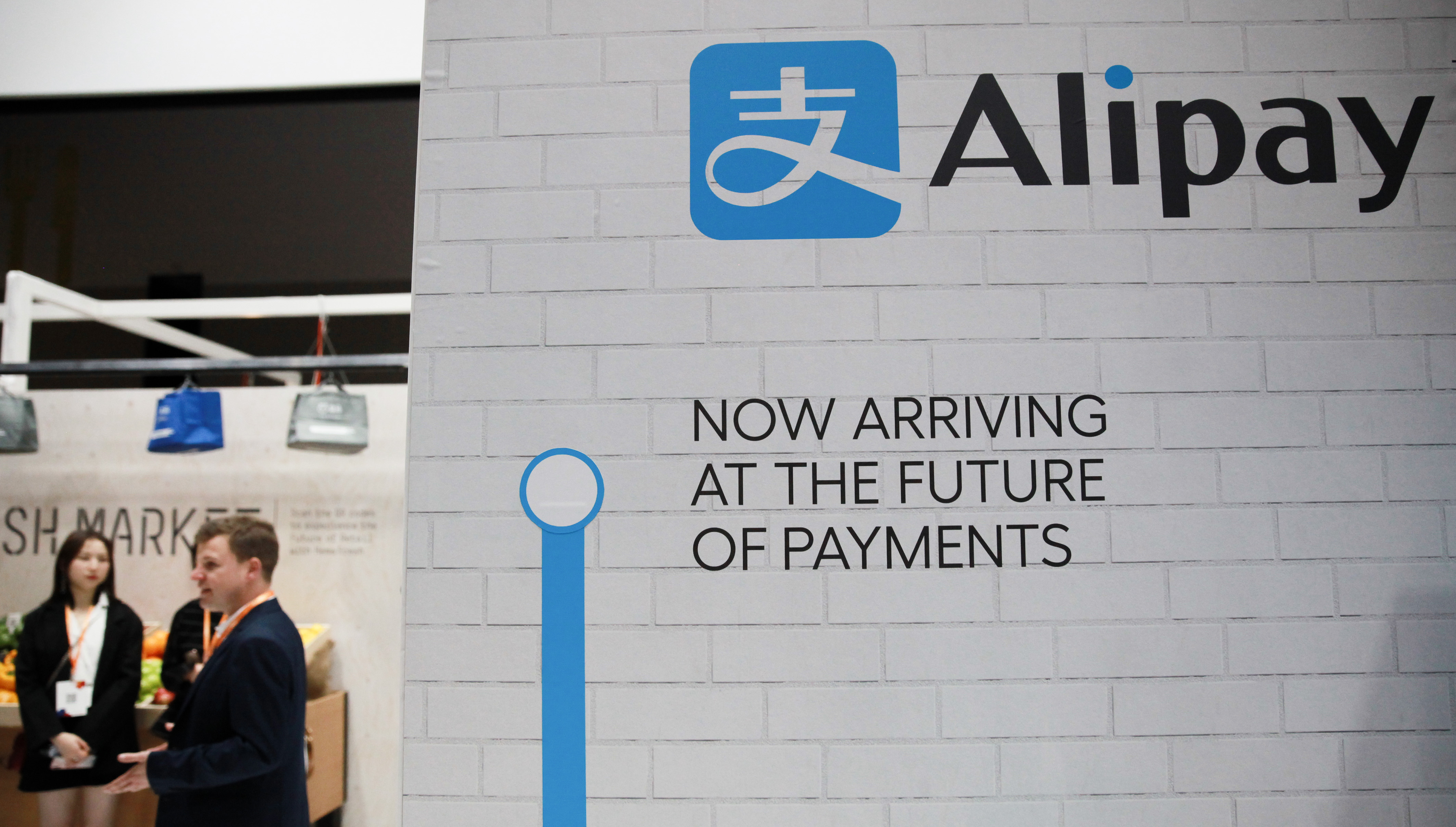 A booth of Alipay is seen during the Alibaba E-commerce Expo in Sydney, Australia, Sept. 21, 2018. (Xinhua/Bai Xuefei)