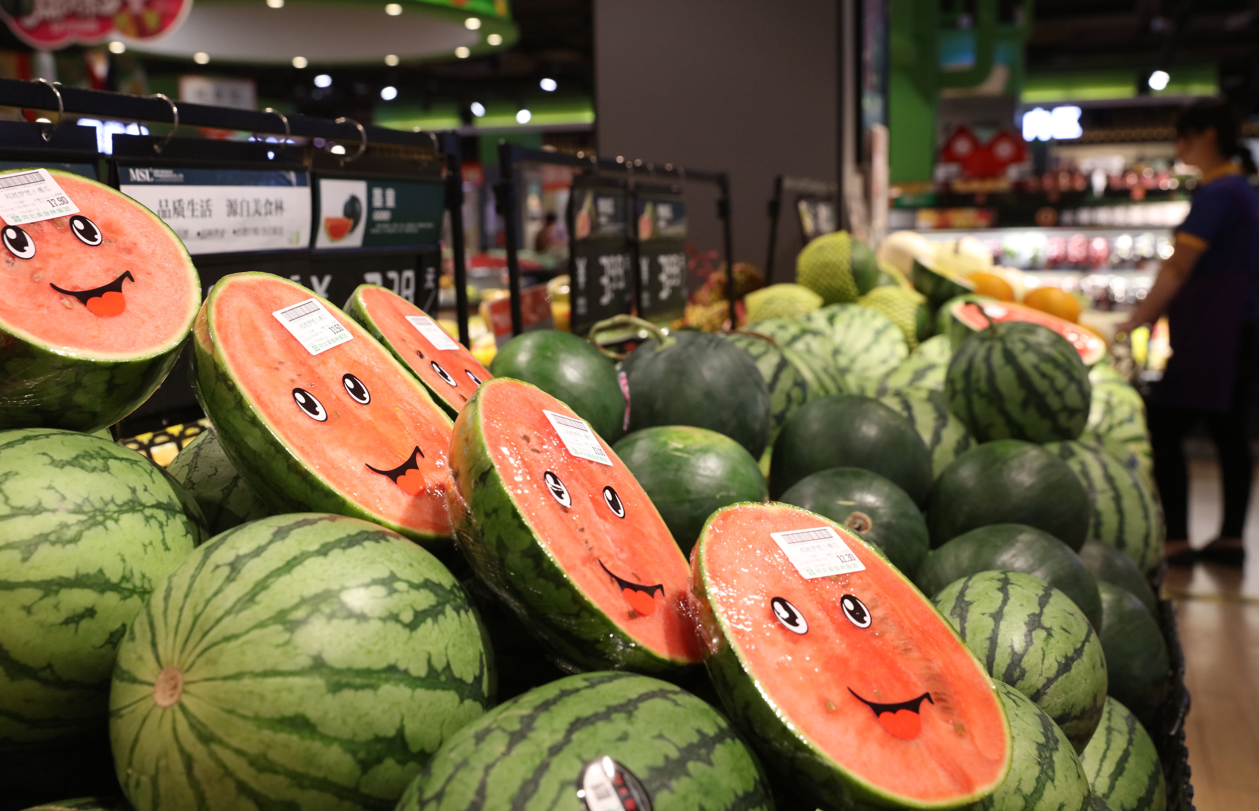 A customer shops for fruits at a supermarket in Handan, north China's Hebei Province, June 12, 2019. (Photo by Yang Yang/Xinhua)
