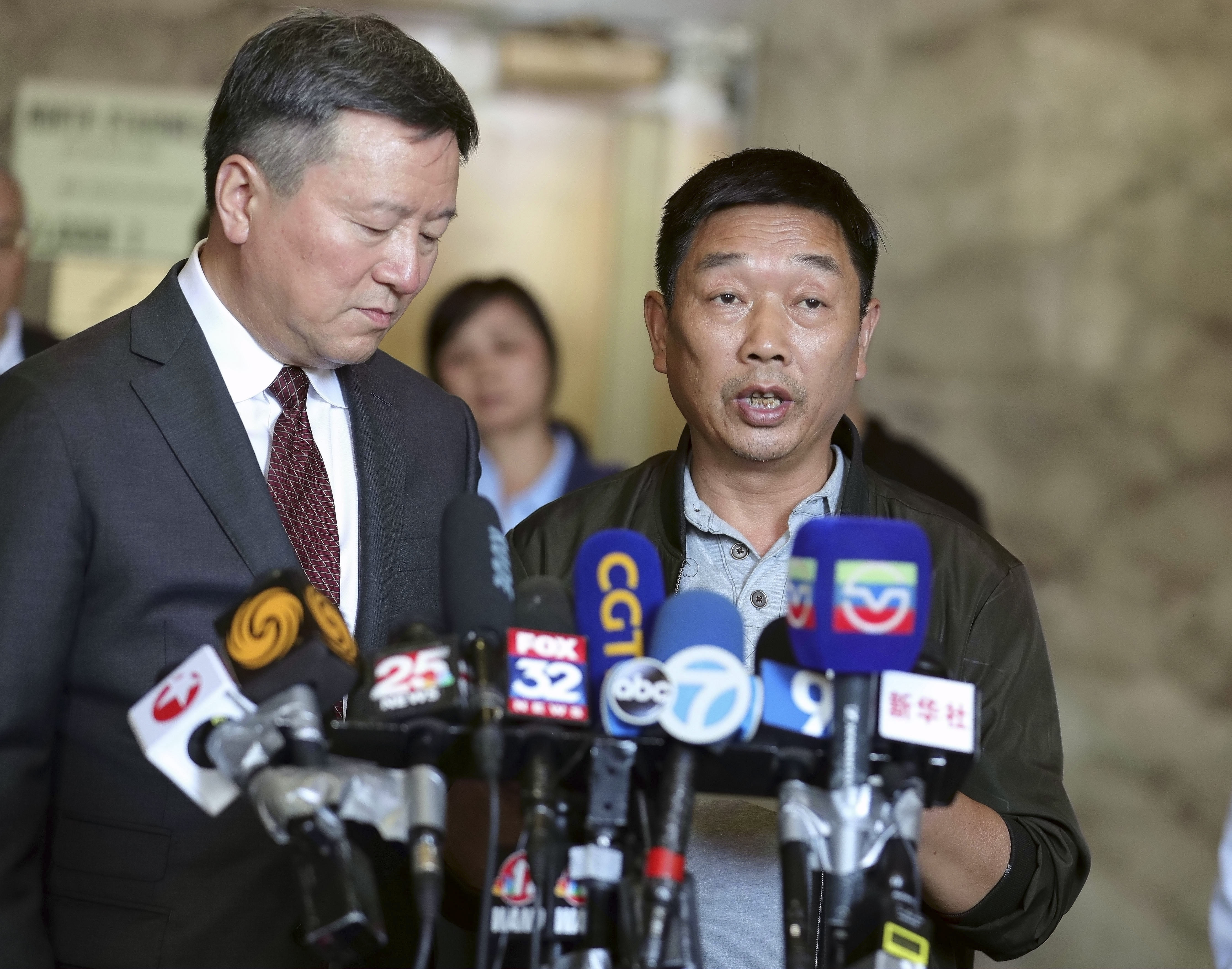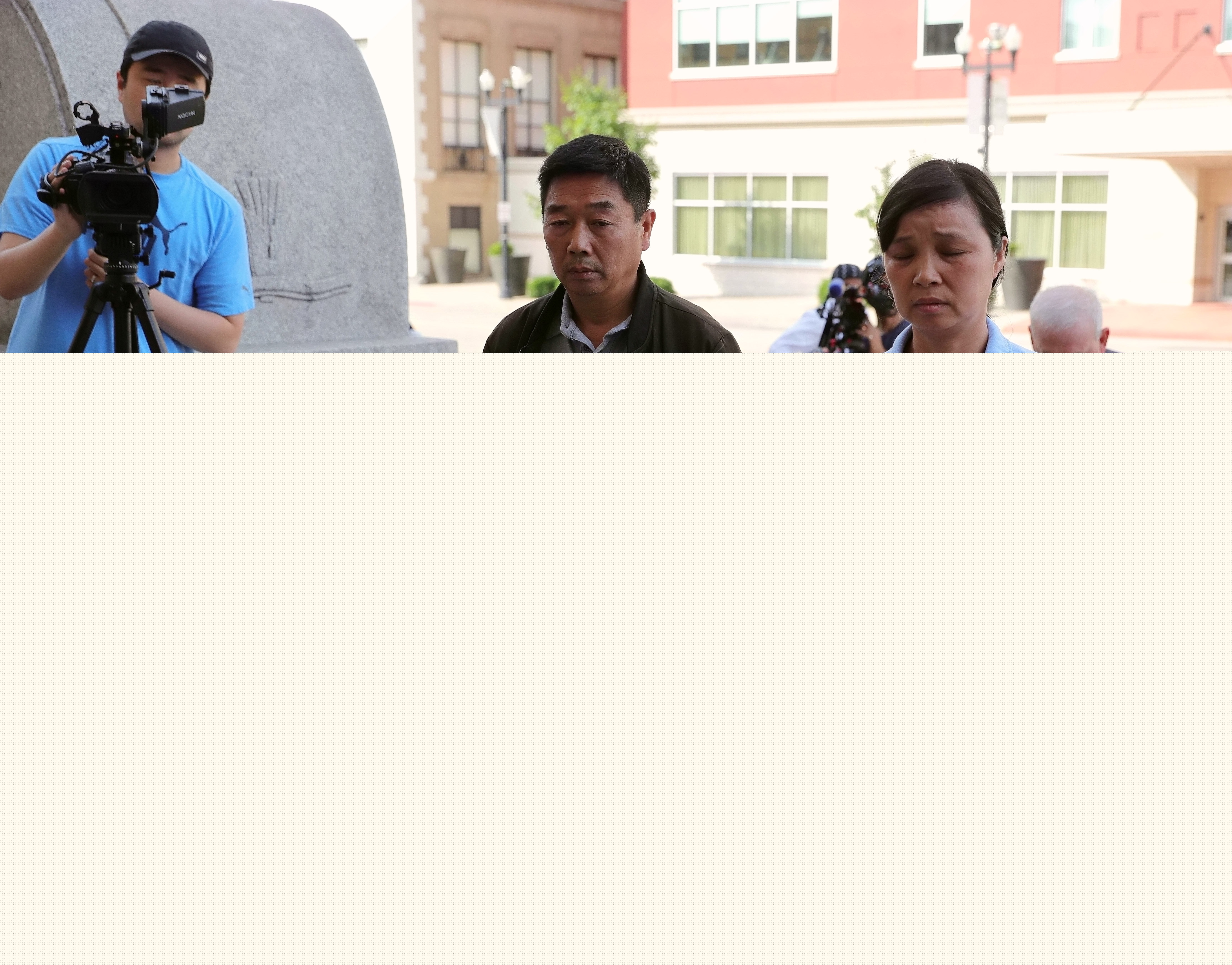 Zhang Ronggao (R), father of Zhang Yingying, speaks at a press conference after final verdict in Peoria, Illinois, the United States, July 18, 2019. (Xinhua/Wang Ping)