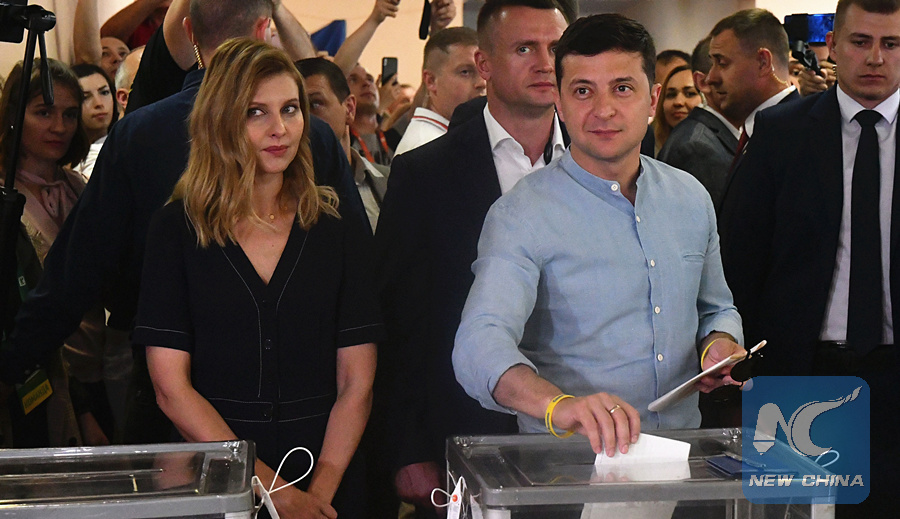 KIEV, July 22 (Xinhua) -- Ukrainian President Volodymyr Zelensky's party on Monday claimed victory in the snap parliamentary elections held over the weekend, expecting to secure an absolute majority in the 424-seat parliament.