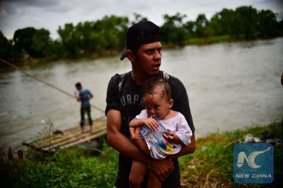 File Photo: A Honduran migrant heading in a caravan to the United States holds a baby after arriving in Ciudad Hidalgo, Chiapas state, Mexico after crossing the Suchiate River in a makeshift raft from Guatemala, on Oct. 20, 2018. (Xinhua/AFP)