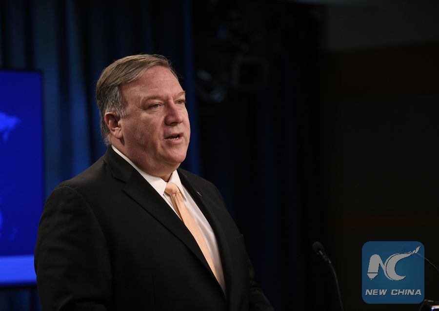 U.S. Secretary of State Mike Pompeo speaks during a press briefing in Washington D.C., the United States, April 22, 2019. (Xinhua/Liu Jie)