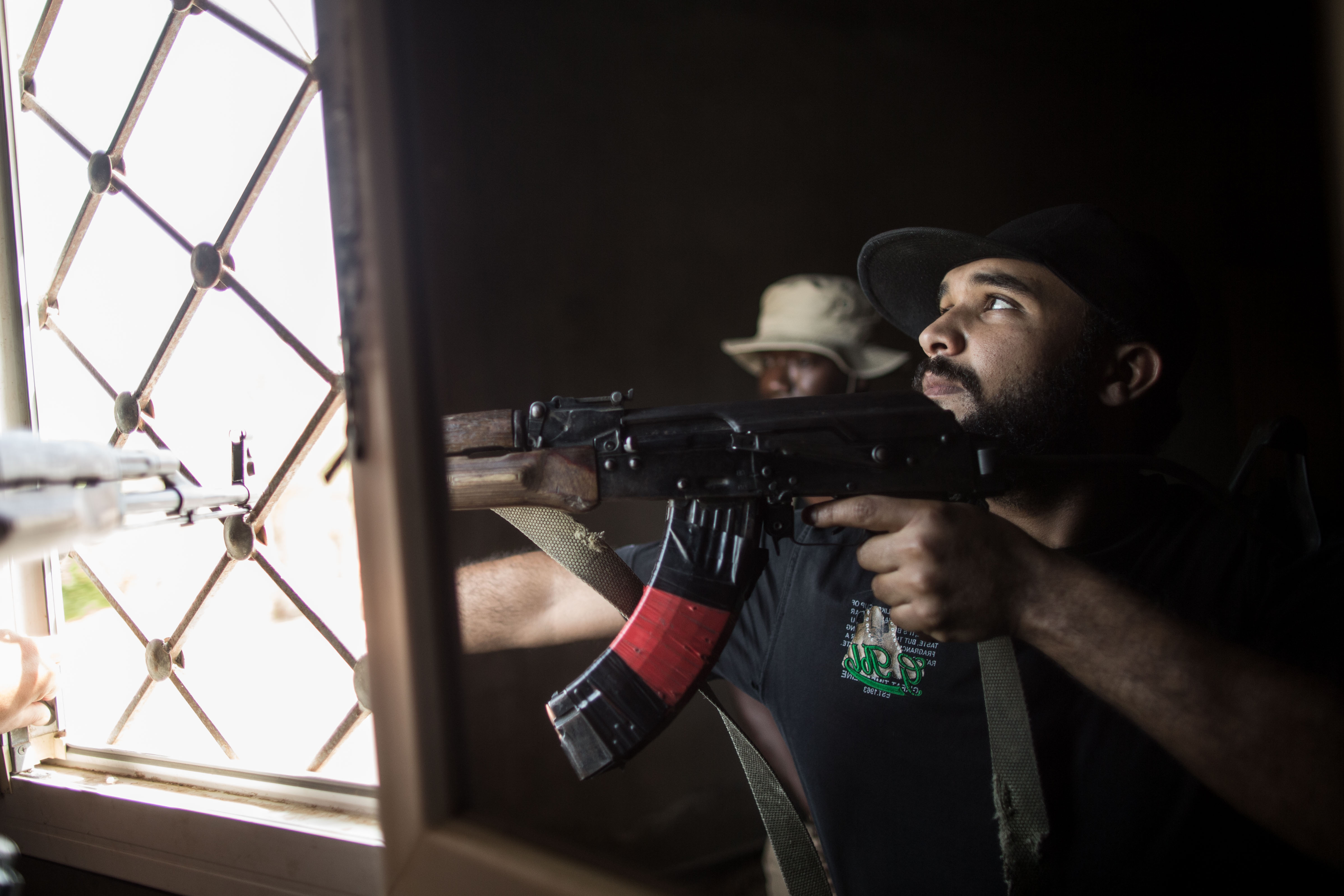 Fighters of the UN-backed Government of National Accord (GNA) are seen during clashes with the east-based Libyan National Army (LNA) at the Al-Yarmook frontline in Tripoli, Libya, on Aug. 9, 2019. (Xinhua/Amru Salahuddien)
