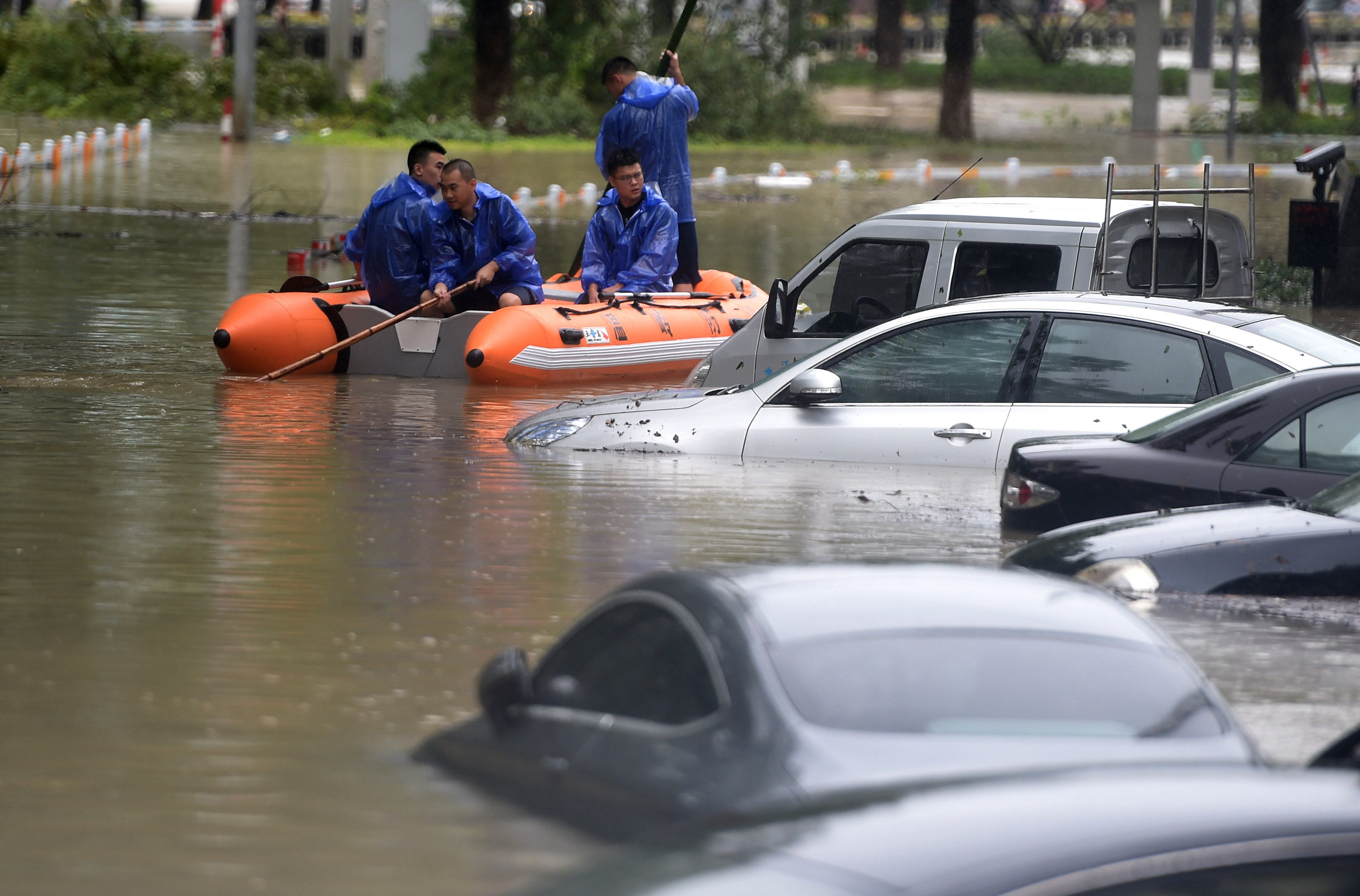 On Saturday, heavy downpours flooded the 1,600-year-old town of Linhai, about one and half hour drive north from where the typhoon landed. The town was completely inundated, and rescue workers had to navigate on inflatable boats and evacuate residents. Floodwater started to retreat on Sunday, rescuers said.