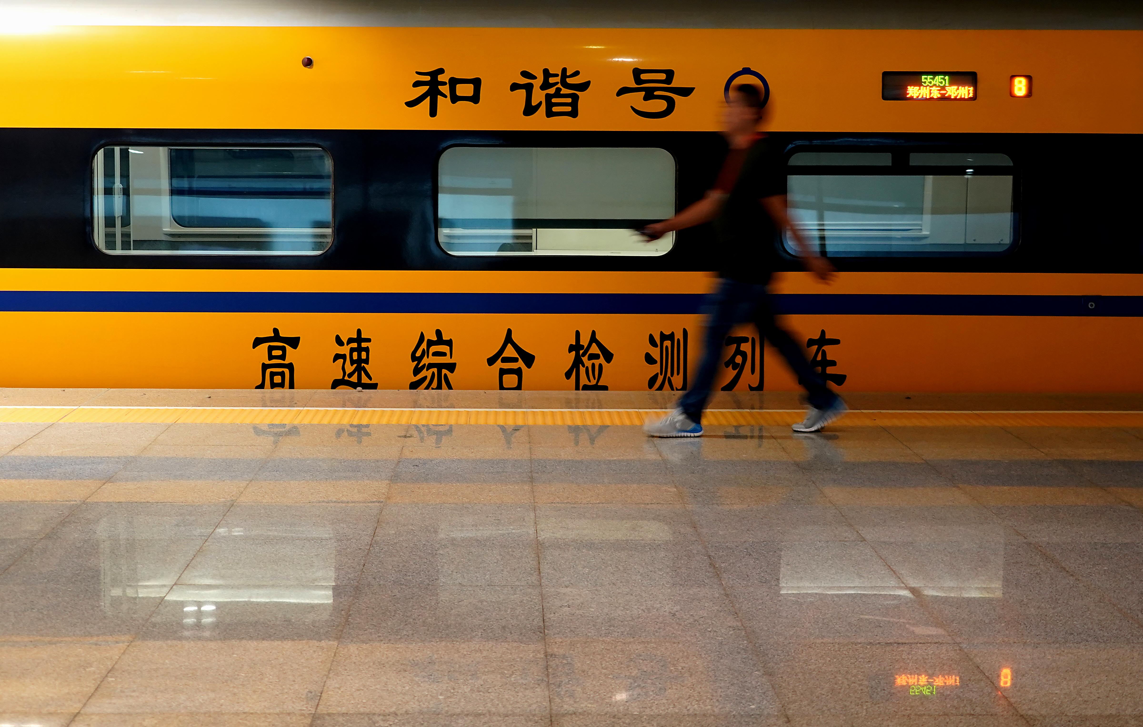 A comprehensive inspection train leaves Zhengzhou East Railway Station in Zhengzhou, central China's Henan Province. (Xinhua/Li An)