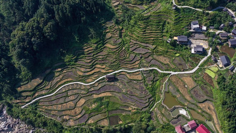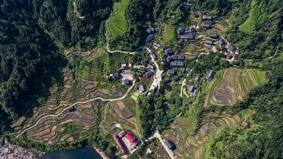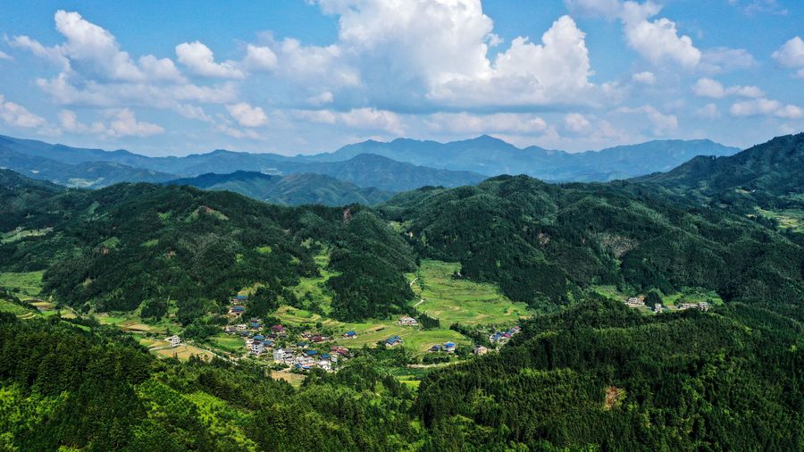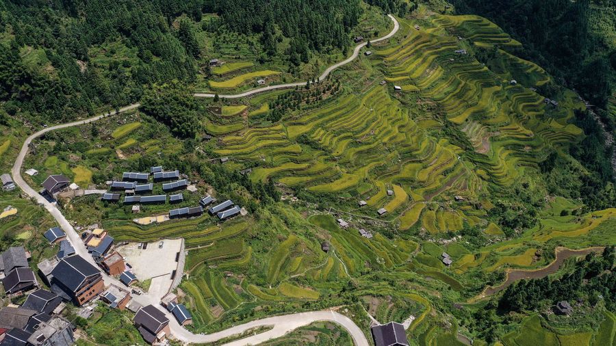 Aerial photo taken on Sept. 11, 2019 shows the autumn scenery of Sirong Township in Rongshui Miao Autonomous County, south China's Guangxi Zhuang Autonomous Region. (Xinhua/Zhang Ailin)