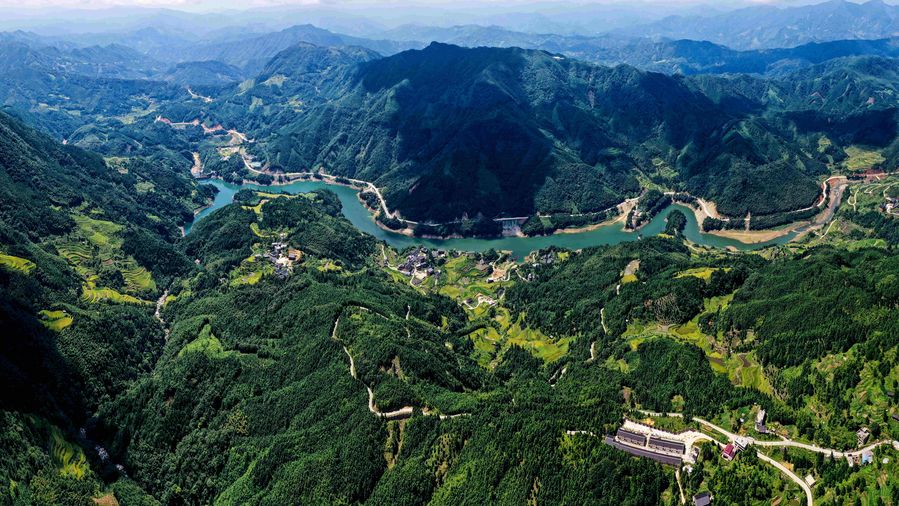 Aerial photo taken on Sept. 11, 2019 shows the autumn scenery of Longnyu trench in Rongshui Miao Autonomous County, south China's Guangxi Zhuang Autonomous Region.(Xinhua/Zhang Ailin)