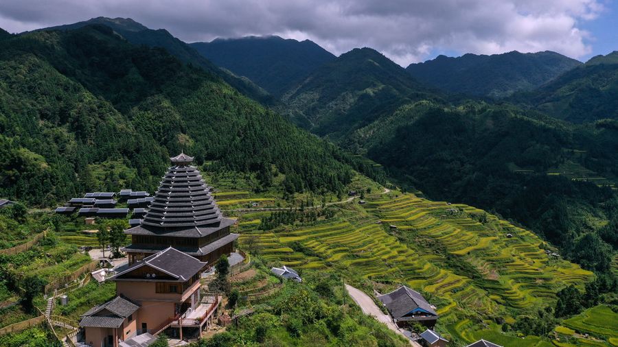 Aerial photo taken on Sept. 11, 2019 shows the autumn scenery of Rongdi Village, Sirong Township in Rongshui Miao Autonomous County, south China's Guangxi Zhuang Autonomous Region.(Xinhua/Zhang Ailin)