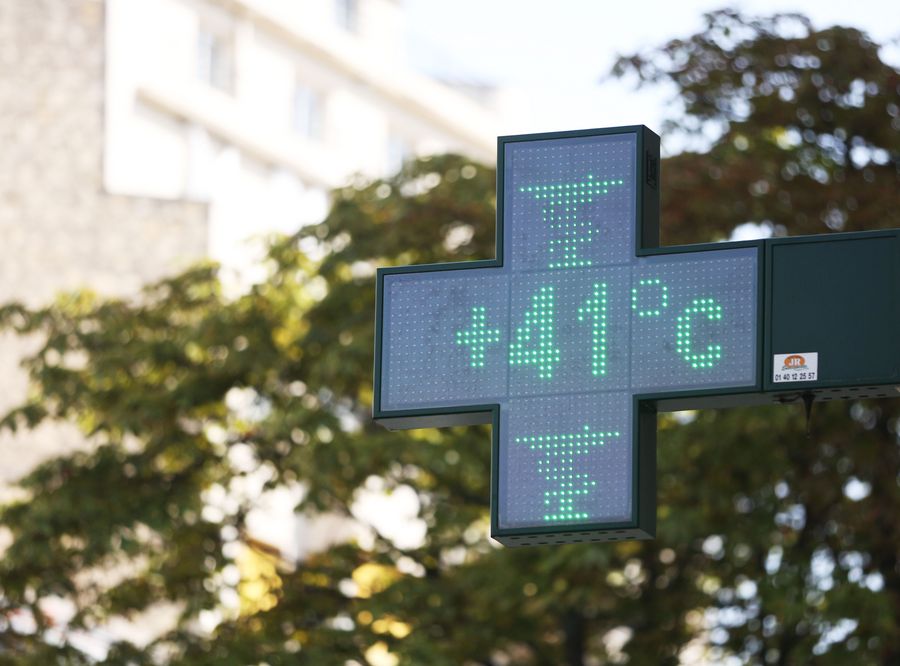 A thermometer shows 41 degrees centigrade at noon in Paris, France, July 25, 2019.(Xinhua/Gao Jing)