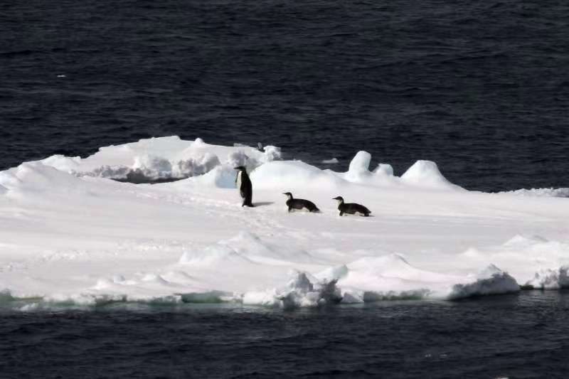 Floating ice and emperor penguins are seen in the Southern Ocean, Nov. 25, 2018.(Xinhua/Liu Shiping)
