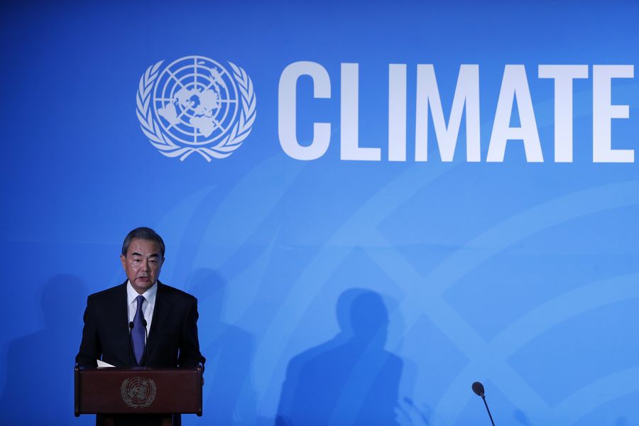 Chinese President Xi Jinping's special representative, State Councilor and Foreign Minister Wang Yi attends the Climate Action Summit at the UN headquarters in New York, Sept. 23, 2019. (Xinhua/Li Muzi)
