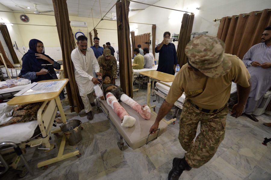 Earthquake victims receive medical treatment at a hospital in Mirpur district of Pakistan-controlled Kashmir on Sept. 24, 2019. (Xinhua/Ahmad Kamal)