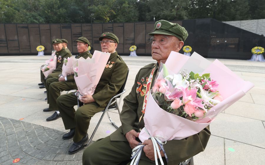Veterans attend a ceremony at the cemetery of Korean War martyrs in Shenyang, capital of northeast China's Liaoning Province, Sept. 29, 2019. (Xinhua/Yang Qing)