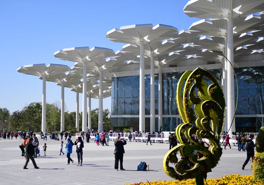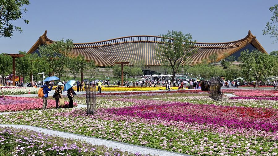 Tourists visit the China Pavilion at the Beijing International Horticultural Exhibition in Beijing, capital of China, May 23, 2019. (Xinhua/Li Xin)