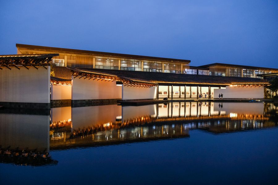 Photo taken on Nov. 6, 2018 shows the night scenery of Wuzhen International Internet Exhibition and Convention Center, a permanent home for the World Internet Conference, in Wuzhen, east China's Zhejiang Province. (Xinhua/Xu Yu)
