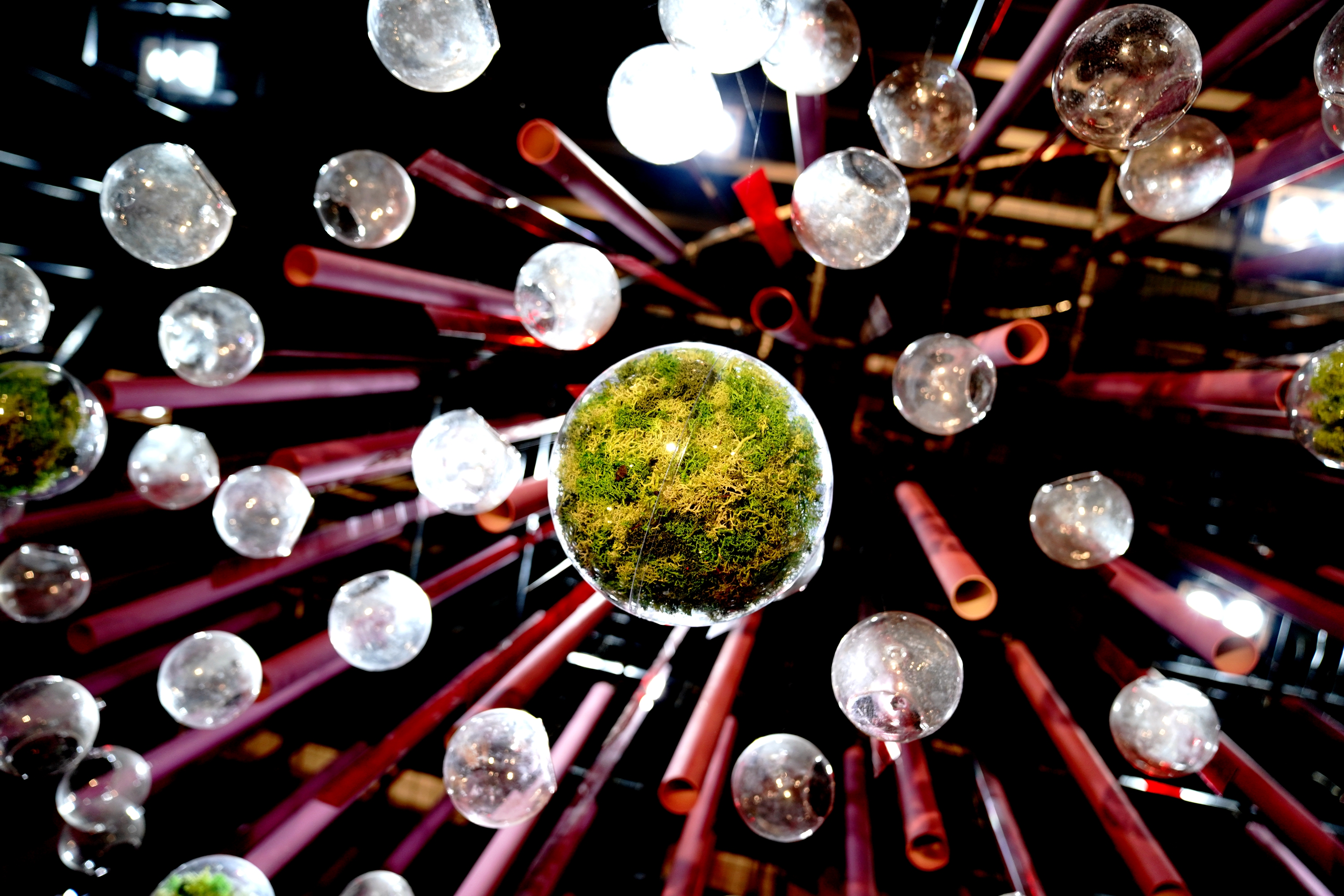 Photo taken on Oct. 27, 2019 shows lichens growing in a transparent ball during a shade plant exhibition at Shanghai Botanical Garden in east China's Shanghai. (Xinhua/Zhang Jiansong)