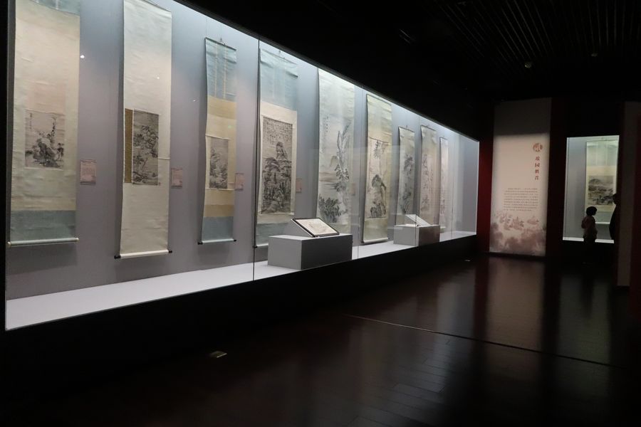 Photo taken on Oct. 27, 2019 shows several paintings by Qian Songyan are on display in a museum in the city of Wuxi, east China's Jiangsu Province. (Photo provided to Xinhua)