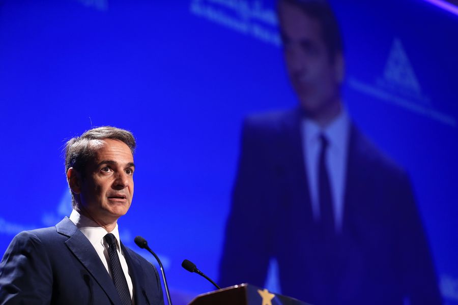 Greek Prime Minister Kyriakos Mitsotakis addresses the 4th EU-Arab World Summit in Athens, Greece, on Oct. 29, 2019. (Xinhua/Marios Lolos)