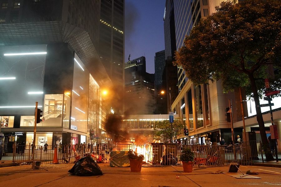 This photo shows streets on fire set by rioters in Hong Kong, China, on Nov. 2. (Xinhua)